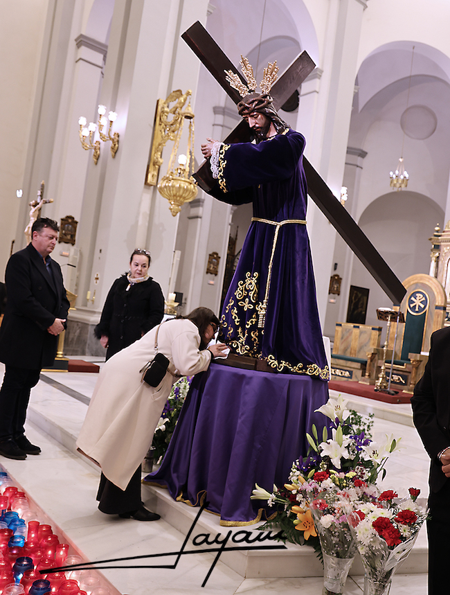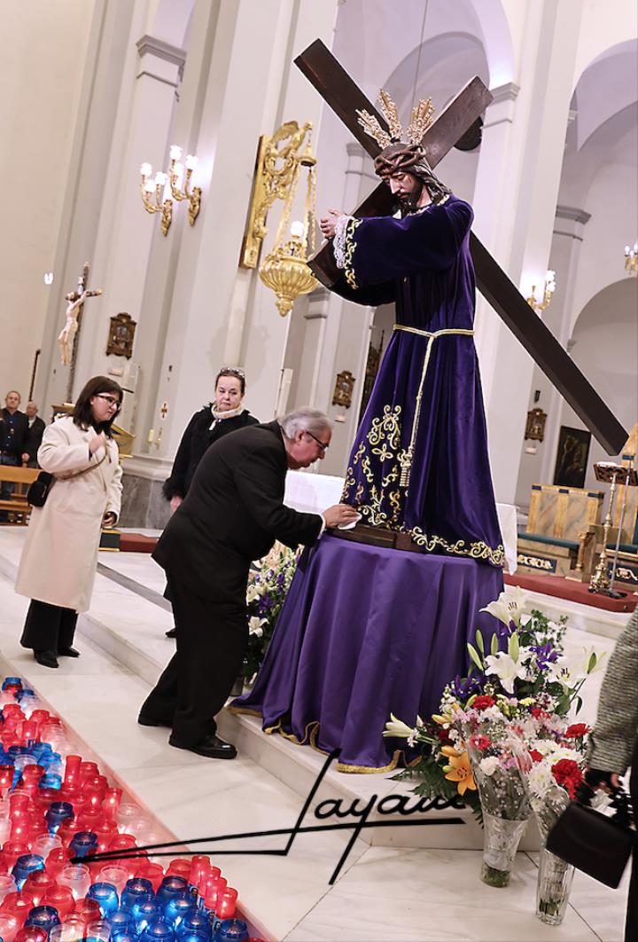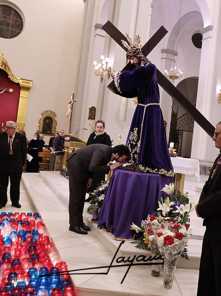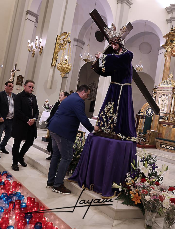 El templo de Nuestra Señora del Rosario acogió la eucaristía en honor a la imagen que creó el artista Rigal para la agrupación procesionista que lleva su nombre, la cual culminó con el tradicional besapié.