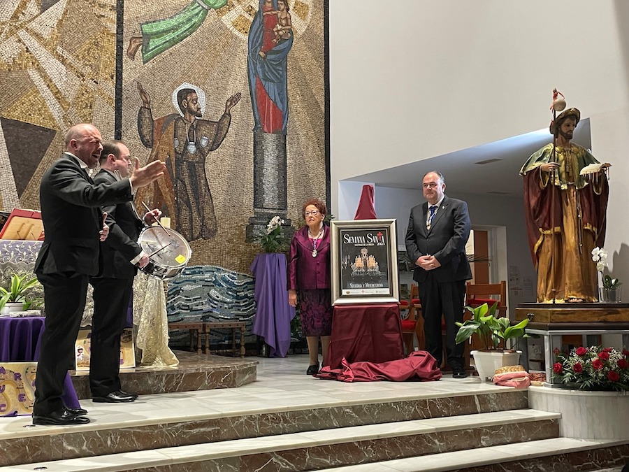 Cuando las campanas de la parroquia ribereña que marcaban las ocho de la tarde, dejaron de sonar, en su interior, entre la oscuridad, se comenzó a escuchar el sonido de un tambor, que lentamente desde el fondo de la parroquia, se iba aproximando hasta la luz del altar, donde junto a él, irrumpió el más sentido y puro cante por saetas, que abrió el bonito y emotivo acto, de la presentación del cartel de la Semana Santa, del citado termino costero, de la Ciudad del Aire de San Javier.