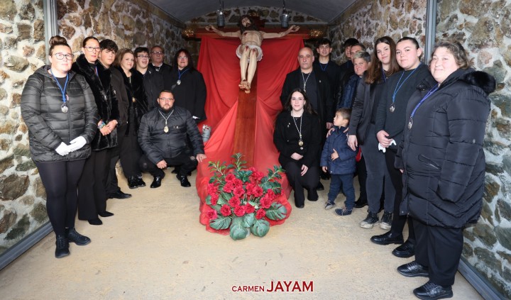 Antes de comenzar del Vía Crucis desde la mina Agrupa Vicenta, fueron numerosas las personas y grupos que quisieron tener una foto junto al crucificado.