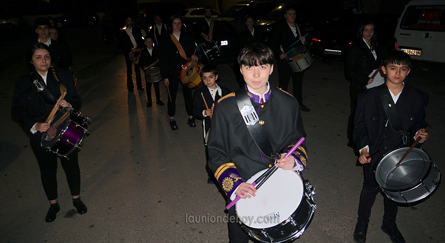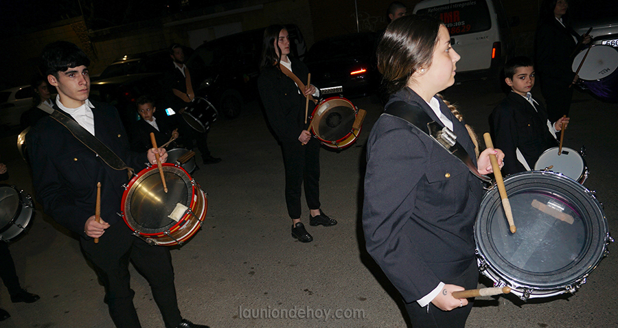 Los pasacalles de grupos de música procesionistas para dar a conocer a la ciudad de que se van a celebrar actos de cuaresma de la Semana Santa Minera se vienen celebrando dos años y comienzan a ser una tradición. En la foto, la banda de la agrupación del Nazareno anoche.