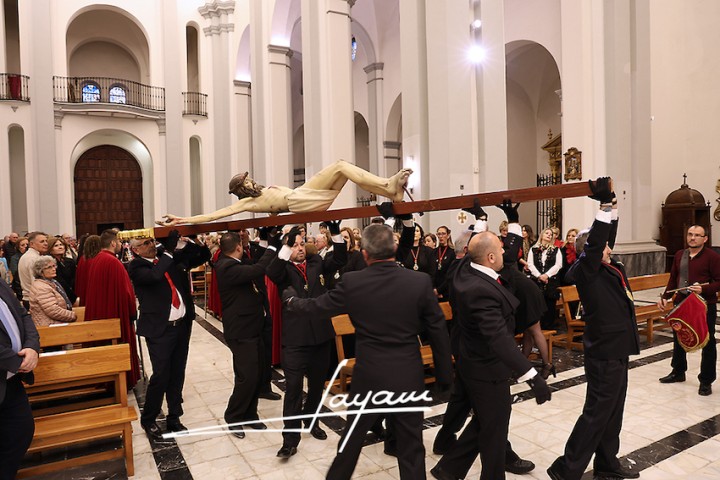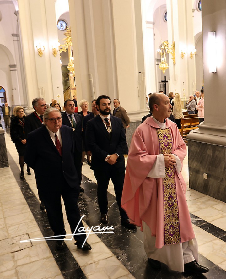 La agrupación que lleva el nombre del crucificado unionense ha celebrado la tradicional misa de cuaresma, que estuvo precedida por una procesión claustral en la iglesia del Rosario y tras la cual le fue cantada una saeta por Sebas Andreu y fue objeto del besapié.