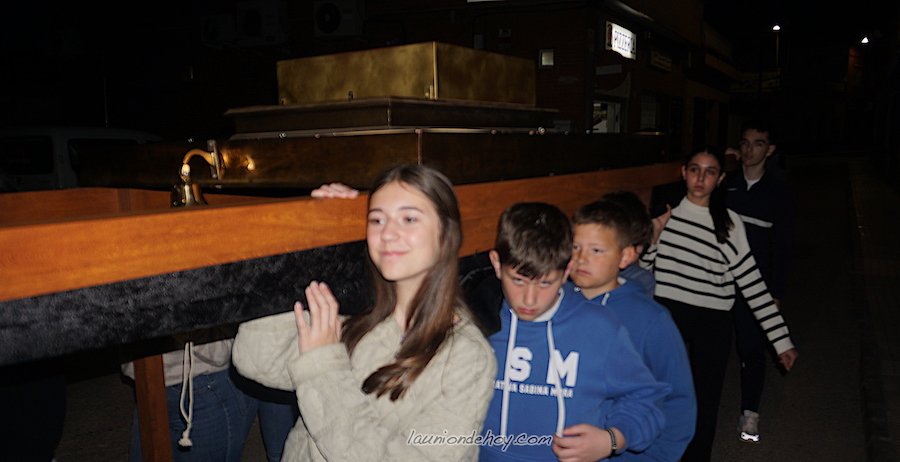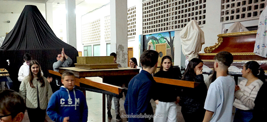 Alumnos de la cooperativa de enseñanza unionense de entre 10 y 12 años de edad se han ofrecido como voluntarios para llevar la peana de la agrupación de la Virgen de la Caridad en el desfile de 'Los niños de la gavia', lo que contrasta con que todavía faltan cerca de veinte personas para completar el grupo de portapasos del trono principal del Jueves Santo.