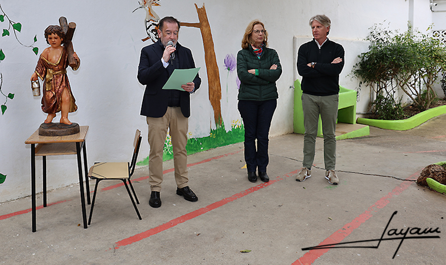 En dicho acto también han estado presentes los profesores y alumnos de tercer y cuarto curso de educación secundaria que se encargan de portar la imagen de Jesús con la pequeña cruz, que creó en 2017 el imaginero Galo Conesa, a hombros en la procesión de 'Los niños de la favia', que sale todos los años el sábado víspera del Domingo de Ramos desde este colegio hasta el templo de Nuestra Señora del Rosario. También han asistido directivos de la hermandad y representantes de algunas agrupaciones.