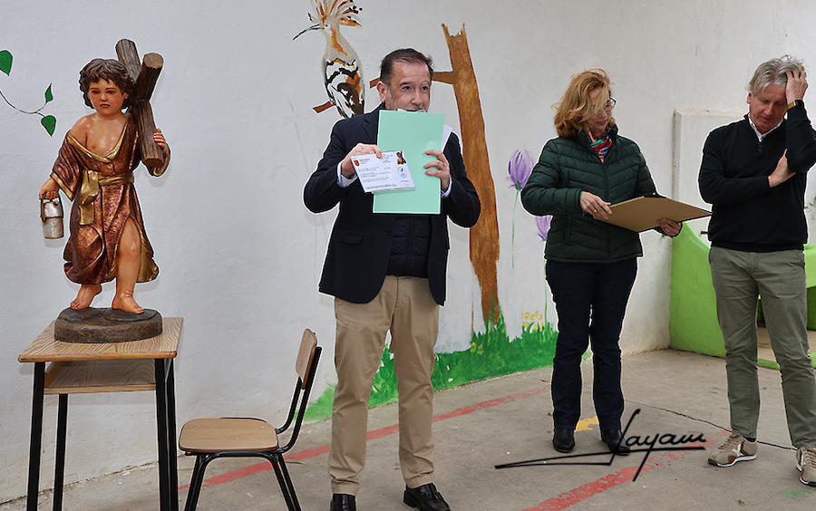 La emoción ha embargado a José Cortado Balsalobre, hermano mayor de la Ilustre Cofradía del Santísimo Cristo de los Mineros de La Unión y presidente del Nazareno cuando se recibió la talla, que incluso ha llegado a soltar alguna lagrimilla, cuando el que considera como su tercer hijo, el Niño Jesús Minero era perpetuado como alumno del colegio de Nuestra Señora del Carmen de La Unión (Las Carmelitas), en una ceremonia en la que el director del centro docente, José Casildo Alcaraz Mateo, le ha entregado a Cortado la solicitud de plaza y la ficha de alumno admitido del colegio firmada y registrada, así como el carné de estudiante que tienen todos los alumnos.
