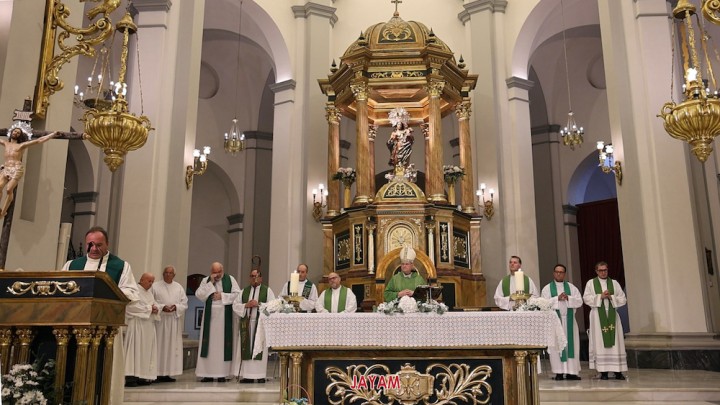 El obispo de la diócesis, monseñor Lorca Planes, ha presidido una eucaristía concelebrada con los párrocos locales Ginés Luis Vicente y Luis Miguel García, entre otros sacerdotes, en un oficio enriquecido por las voces de la coral unionense Argentum. El epílogo ha sido la comida de hermandad en un salón de celebraciones de La Unión.