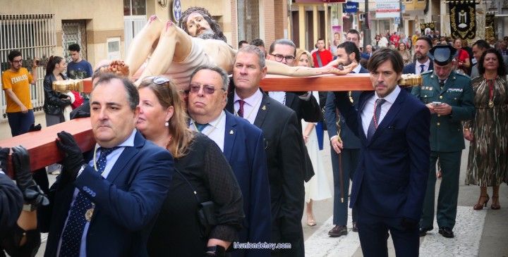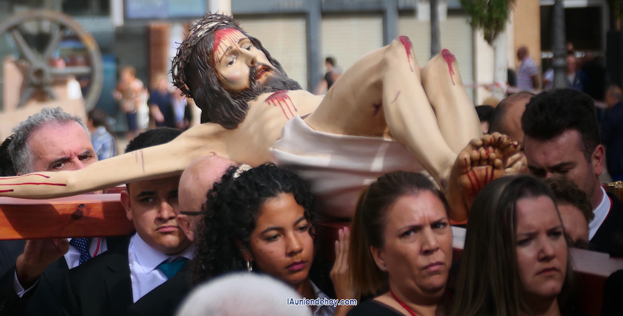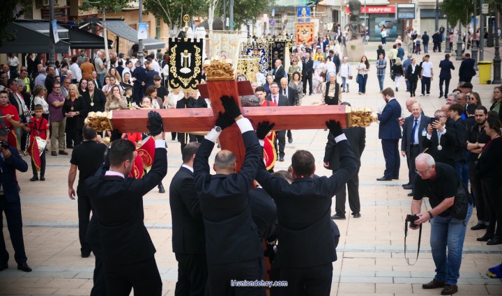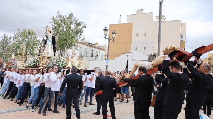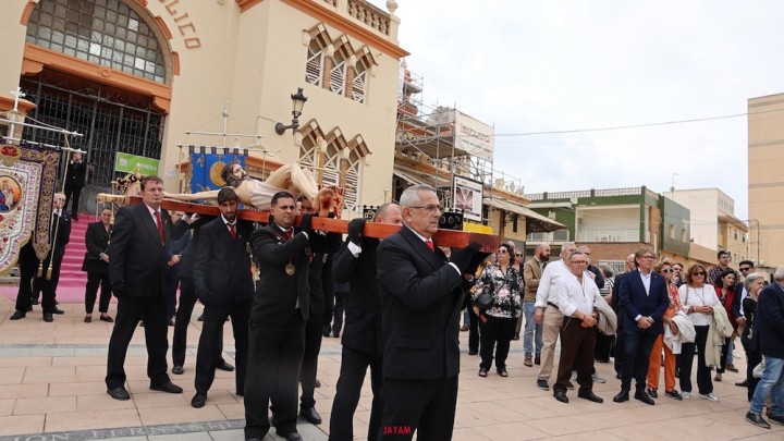 La procesión ha transcurrido de forma perfecta dentro de los tiempos marcados, culminando con un encuentro entre el Crucificado y su dolorosa madre, para enseguida marchar hacia la iglesia del Rosario, que se ha visto abarrotada de asistentes como hacía tiempo que no se veía.