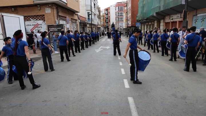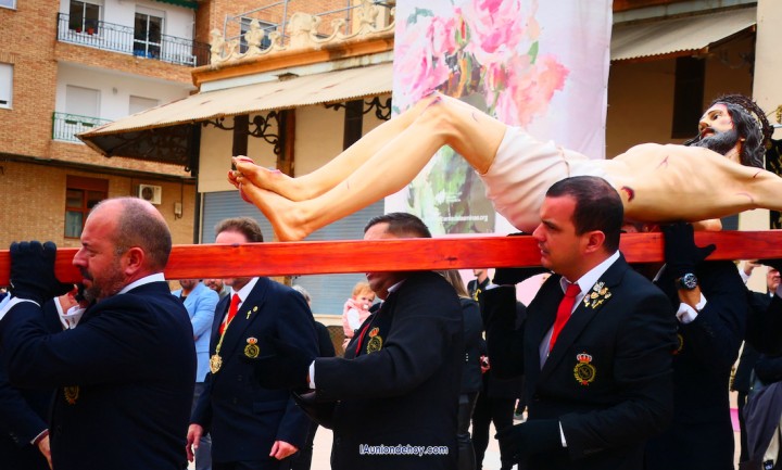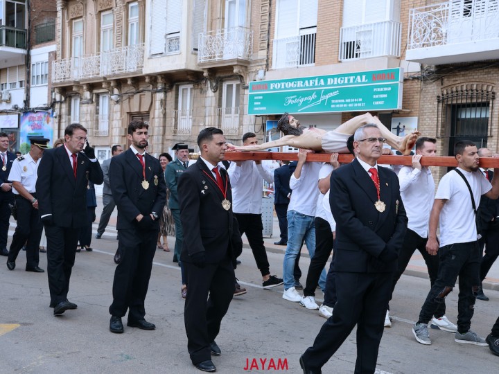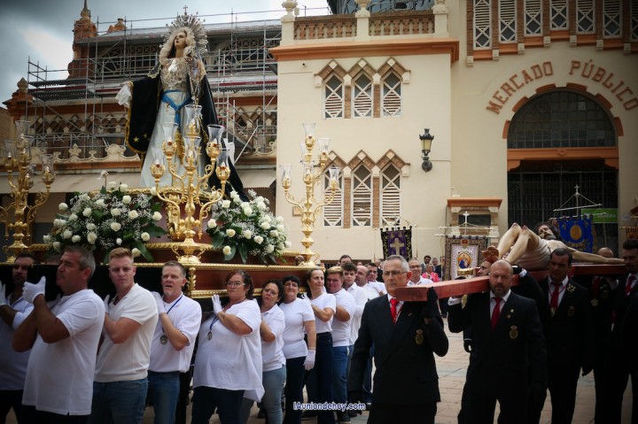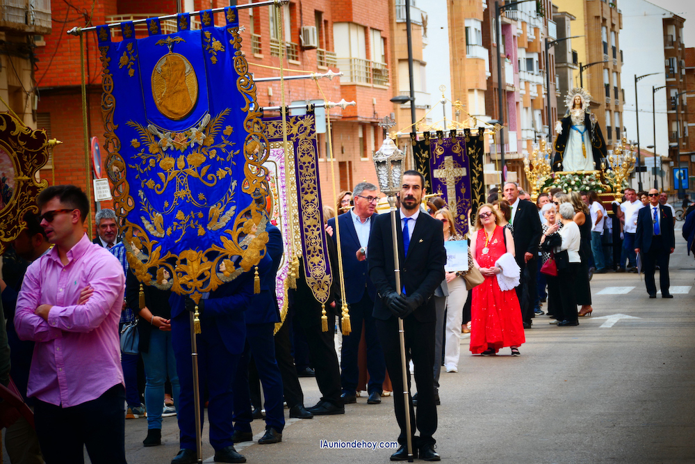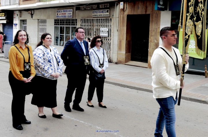 La imagen del Cristo de los Mineros avanzó directamente a hombros de los caballeros portapasos de la Agrupación del Santísimo Cristo de los Mineros de La Unión, seguido enorden alfabético por todas las cofradías participantes. Por su parte, la Virgen del Rosario en sus Misterios Dolorosos (La Dolorosa) lo hizo sobre trono, siendo llevada por un grupo de costaleros mixto de hombres y mujeres de su agrupación. La imagen estrenaba un manto nuevo especial para un trono nuevo, pues sobre el que fue ayer no es su peana procesionista, en la que va bajo palio.