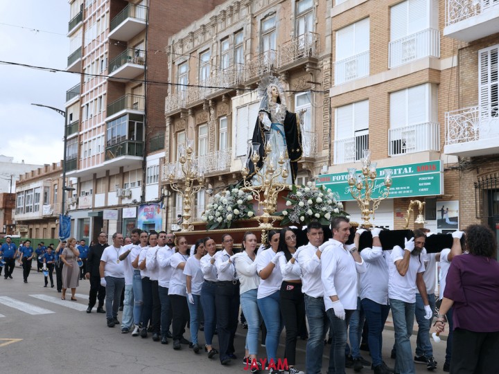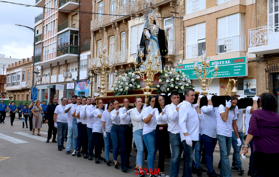 Las 'XXII Jornadas de cofradías y hermandades de la Diócesis de Cartagena' atrajo a la ciudad minera a colectivos procesionistas de 24 de los 45 territorios con ayuntamiento de la Región de Murcia, cuyos representantes protagonizaron un desfile por el casco histórico formado por unas quinientas personas y una posterior misa que desbordó la parroquia de la patrona. La Dolorosa estrenó manto.