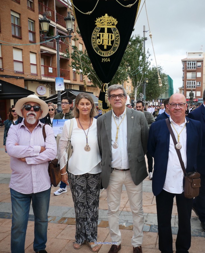 Tras la bienvenida e inscripción en la plaza de Joaquín Costa, frente a la fachada del Mercado Público, lugar donde también se expusieron las imágenes y trono que iban a desfilar, tuvo lugar las palabras de acogida de representantes eclesiásticos y autoridades, con posterior oración. Primero hablaron el alcalde, Joaquín Zapata; la consejera de Empresa, Empleo y Economía Social, María Isabel López Alarcón; el capellán de la cofradía minera, Ginés Luis Vicente; y el hermano mayor, José Cortado, para cerrar con la oración Alfonso Alburquerque, presidente de la Delegación de Cofradías y Hermandades de la Diócesis de Cartagena. Reseñar que se ofrecieron a los participantes 60 litros de chocolate (elaborados por la Hermanad de Romeros de San Ginés) con 300 bollos (donados por cátering 'El abrevadero) además de café de puchero con anís. Fue la antesala de la gran marcha por el casco histórico al ritmo de los golpes de tambor de las bandas unionenses.