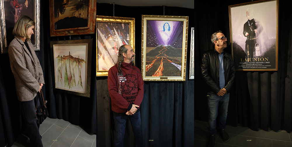 La Cofradía del Cristo de los Mineros inaugura la exposición de los carteles de la Semana Santa Minera desde que se recuperó en 1992 con un histórico acto, pues por primera vez se muestran juntas todas las obras, además de conseguir reunir a bastantes de los cerca de una treintena de autores que, a través de la pintura y la fotografía, han anunciado 33 años de procesiones en la ciudad de La Unión.