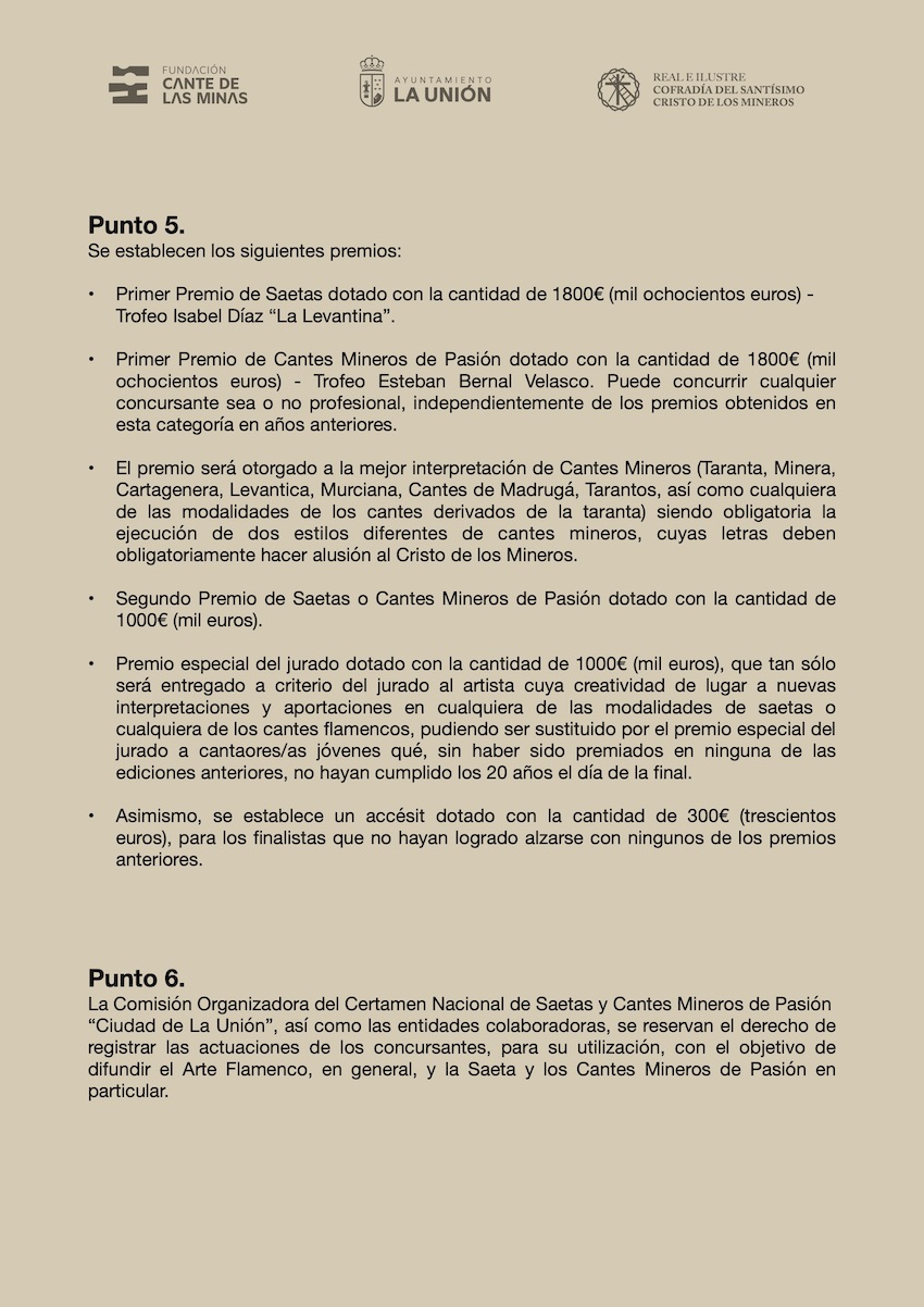 Las bases están disponibles en la web www.fundacioncantedelasminas.org, y además, los interesados pueden solicitar las bases y enviar su documentación al correo electrónico: Esta dirección de correo electrónico está siendo protegida contra los robots de spam. Necesita tener JavaScript habilitado para poder verlo.