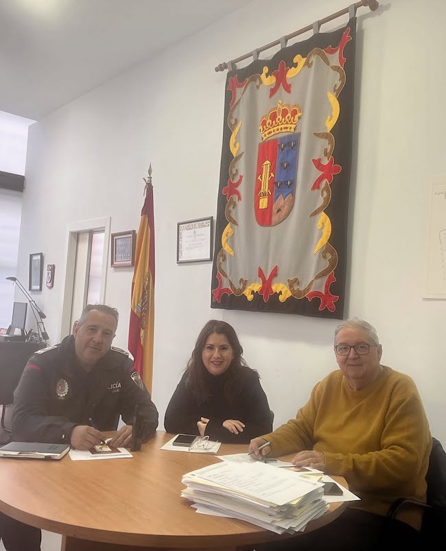 Una reunión de coordinación mantenida por el jefe de la Policía Local de La Unión, Carlos Artés; la teniente de alcalde de Seguridad Ciudadana, Isabel Egea; y el hermano mayor de la Cofradía del Cristo de los Mineros, José Cortado, según el orden de izquierda a derecha en el que figuran en la foto adjunta, ha iniciado los trabajos de preparación de la Semana Santa 2026 en la ciudad.