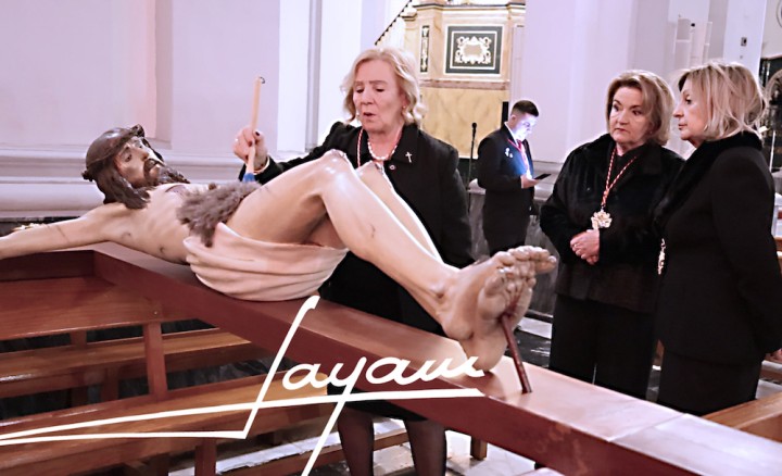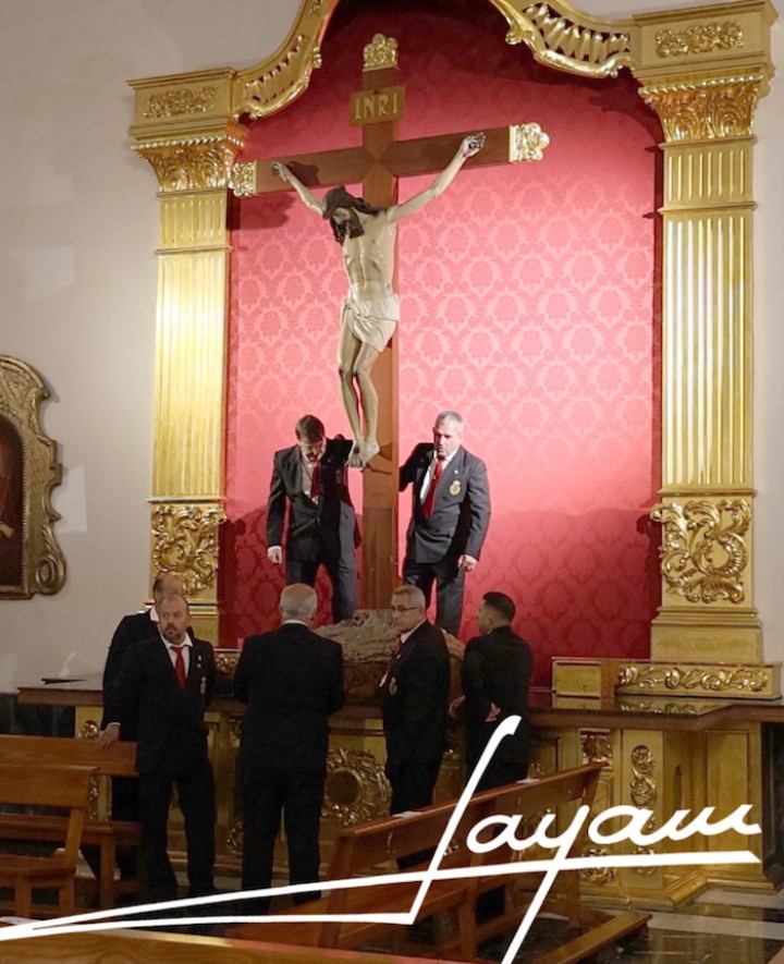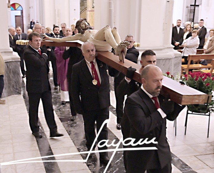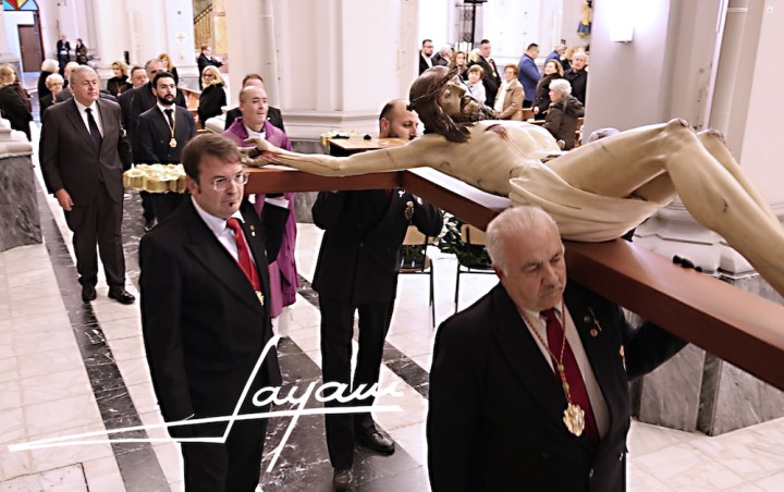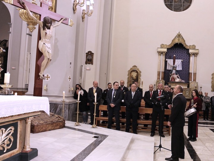 La Agrupación del Santísimo Cristo de los Mineros de La Unión celebraba anoche la procesión claustral con la imagen de su crucificado, que fue portada a hombros por los caballeros portapasos hasta el altar mayor del templo de Nuestra Señora del Rosario, donde fue recibido por la voz del saetero Sebas Andreu. A continuación se celebró la eucaristía en su honor.