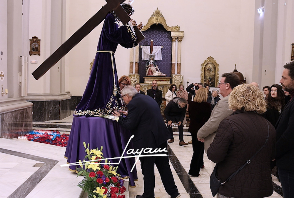 Antonio Meroño 'Jayam' ofrece un reportaje fotográfico y audiovisual de la eucaristía celebrada ayer en la iglesia del Nuestra Señora del Rosario, que fue oficiada por el párroco, Ginés Luis Vicente, y que culminó con el tradicional besapié a la imagen de Jesús portando la cruz en el camino del Calvario.