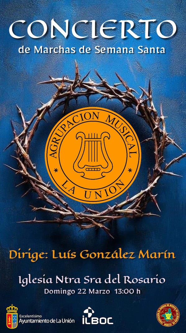 Una muestra de las variadas composiciones que acompañan el paso de los penitentes de las semanas santas de La Unión y de Cartagena podrán escucharse le próximo domingo día 22 en el interior de la iglesia de Nuestra Señora del Rosario con la Agrupación Musical La Unión, siendo la entrada gratuita.