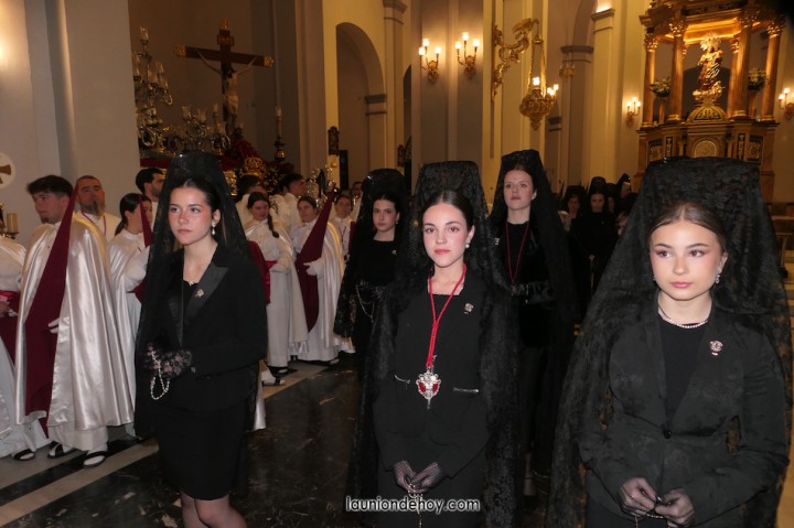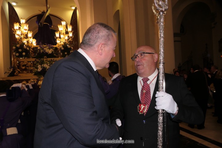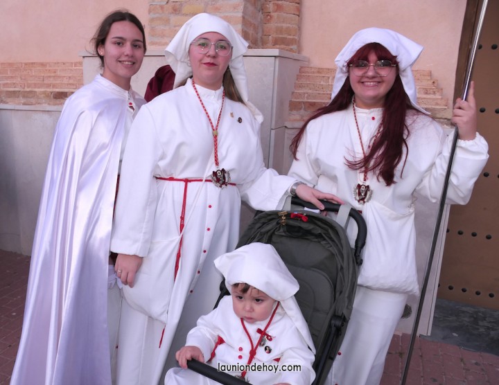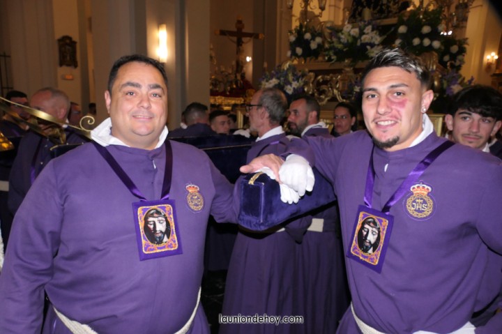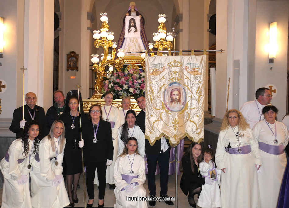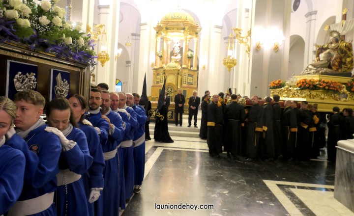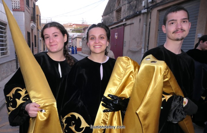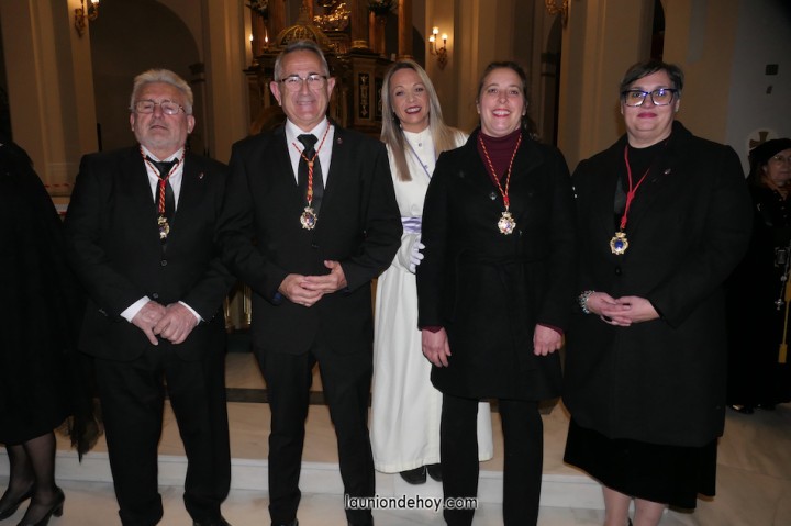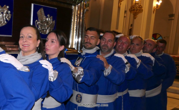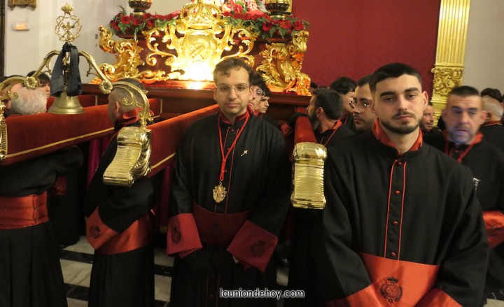 Junto al altar está la representación del PSOE, en el que la edil Leticia Egea forma parte de la Verónica. También el PP tiene edil cofrade con Loly Mendoza, hermana de la Dolorosa, mientras que Isabel Egea (VOX) forma es 'manola'. Por su parte, Daniel Cano, en DLU, mete el hombro en una vara del Nazareno y que esta noche es el encargado de la lectura previa que se le dirige a los costaleros antes de la salida: "Te pedimos que hoy nuestros pies sean uno solo, que el cansancio no nuble nuestra fe y uqe le orgullo de pertenecer a esta Unión nos dé la fuerza que el cuerpo nos niegue, que cada rincón de nuestro barrio...". También destacamos la presencia en el cortejo de otros colectivos religiosos amigos, como son los de la Cofradía del Cristo de la Misericordia de Cartagena y de la Hermanad de Romeros de San Ginés.