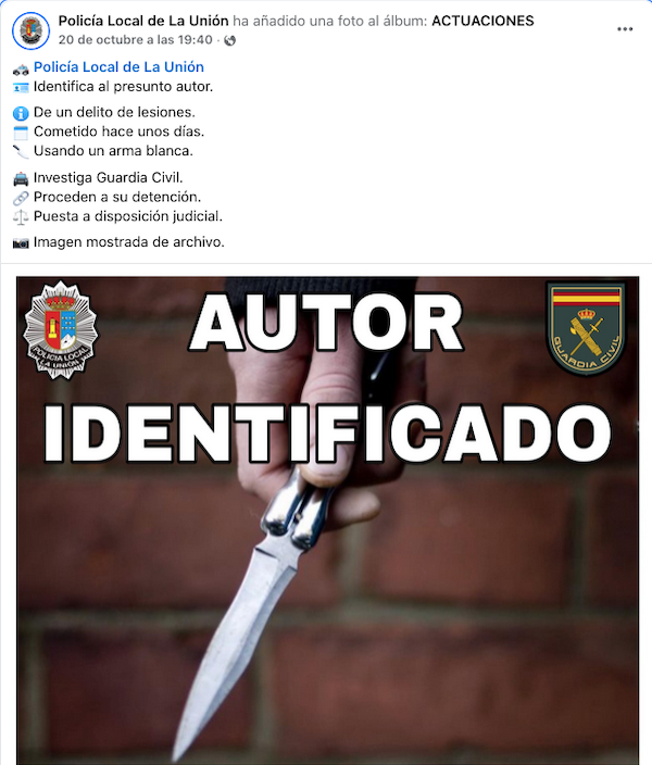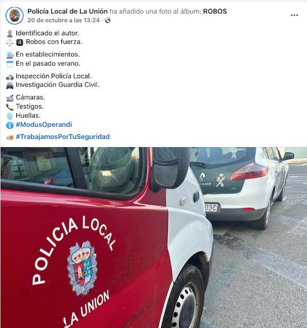 El perfil de la Policía Local de La Unión en Facebook tiene un acceso directo en el periódico de La Unión y su gente con una pestaña habilitada en la parte superior, junto a la cabecera del diario