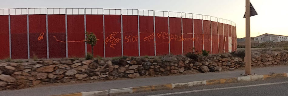 La plaza de toros portátil, que se instaló en la explanada de la calle Cartagena en los primeros días de octubre y que el día 23 de este mes acogió el festival taurino, ha sido objeto de pintadas en los últimos días.