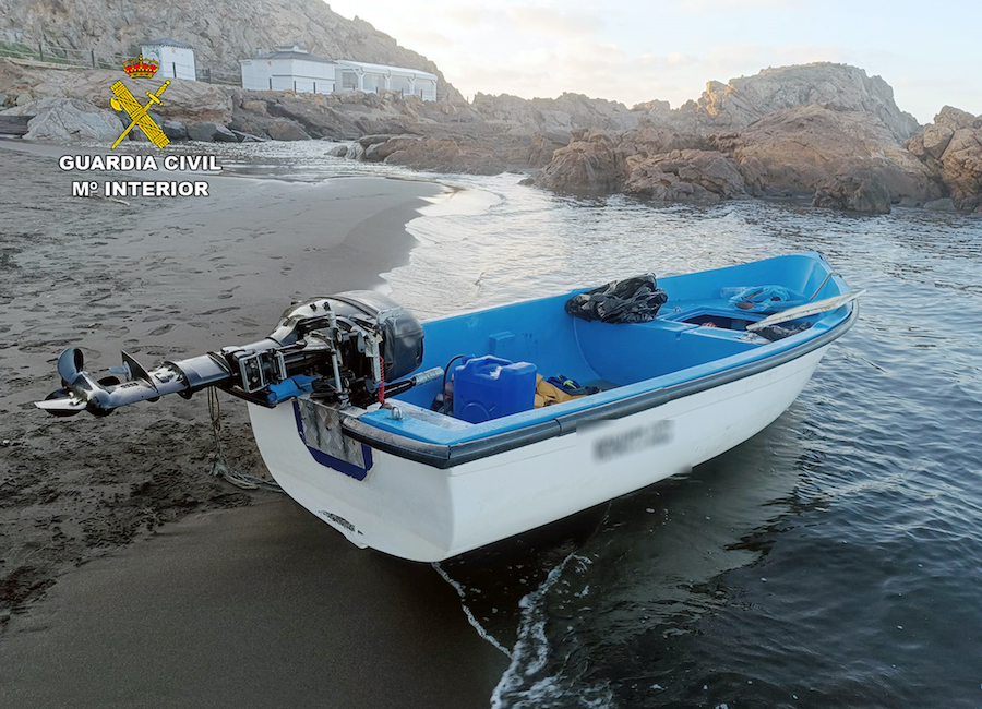 Patrullas de Prevención de Seguridad Ciudadana se dirigieron al lugar y sorprendieron el bote, con siete personas a bordo, supuestamente procedente del norte de África.