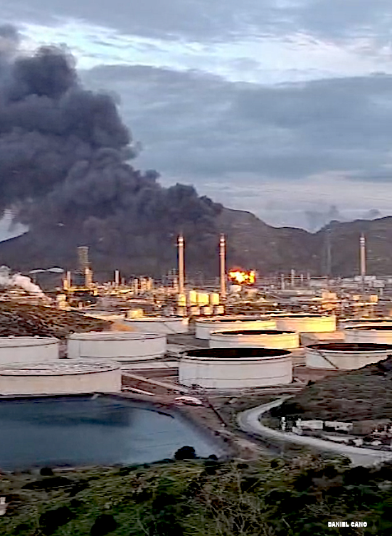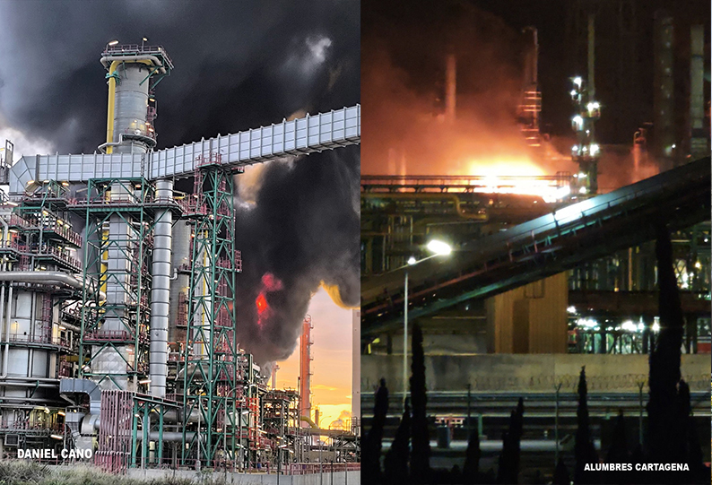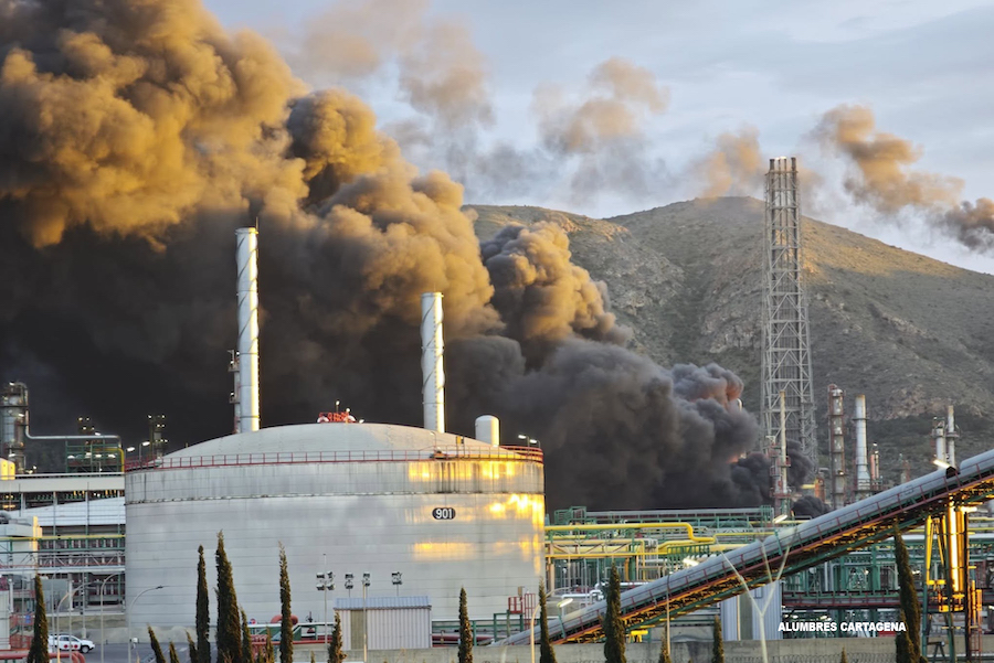 El fuego se inició a las 17.50 horas en el área más antigua de Repsol, activando la empresa enseguida sus servicios de emergencia. El origen, por motivos que aún se desconocen, ha tenido lugar en el tanque que transforma el crudo en gasoil (unidad de 'Topping 3'), produciéndose entonces una detonación. En un primer momento, por el viento, el fuego tenía la dirección de El Gorguel y Portmán. No hay heridos. La alcaldesa de Cartagena se ha desplazado a Escombreras y el regidor de La Unión se ha desplazado a Portmán. La alarma de protección civil, según informan las autoridades, tiene vigencia de 19 a 21 horas.