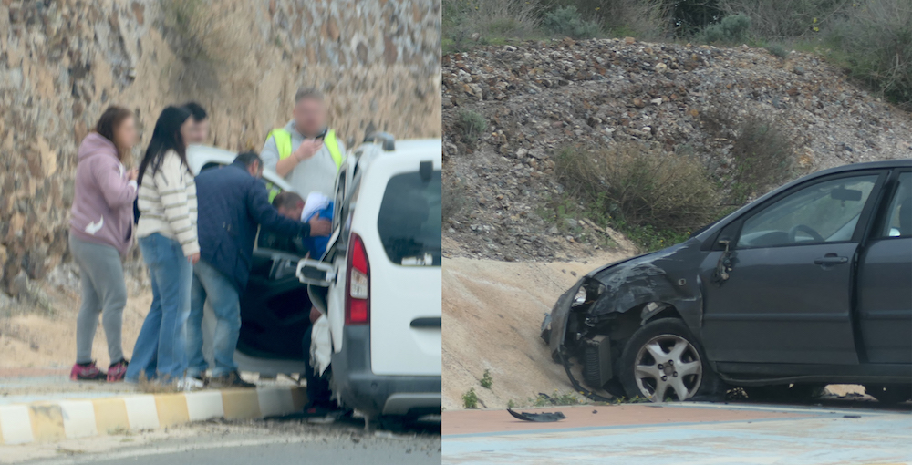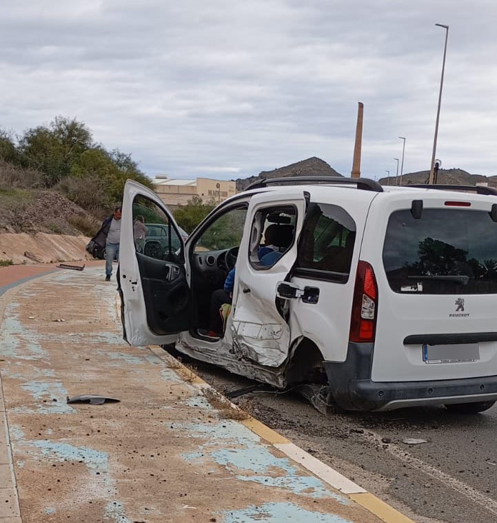 Ha tenido lugar esta mañana, poco antes de las doce, en la calle Cartagena, con la fuerte colisión de un vehículo contra el bordillo de la acera y de otro turismo contra el muro lateral de la vía, después de que ambos colisionasen al invadir uno de ellos el carril contrario.