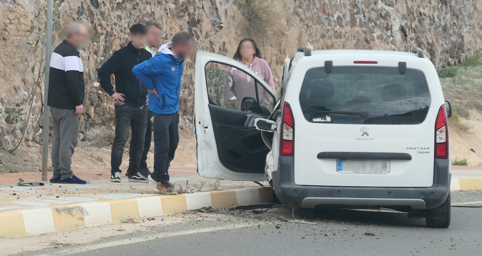 Las personas que iban en los coches próximos se han bajado de forma inmediata para auxiliar a los que iban en el interior de los vehículos implicados (arriba se observa cómo sale uno de los conductores) en un accidente cuyas causas desconocemos. No ha hecho falta la asistencia sanitaria. Se han persona en el lugar la Policía Local, que ha cortado un carril de la carretera hasta que las grúas ha retirado los coches implicados.