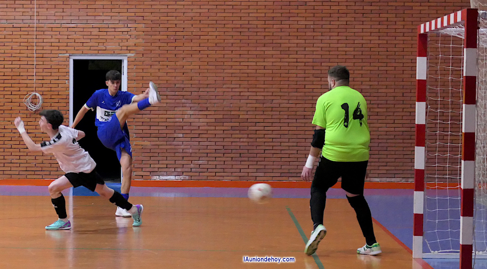 El equipo unionense de fútbol sala vence a un voluntarioso Club Tiempo Libre Murcia en la jornada previa a su enfrentamiento con el Mazarrón, con el que está compitiendo por estar en lo más alto de la clasificación. En la imagen, el chut que acabó en el gol que abrió el marcador.