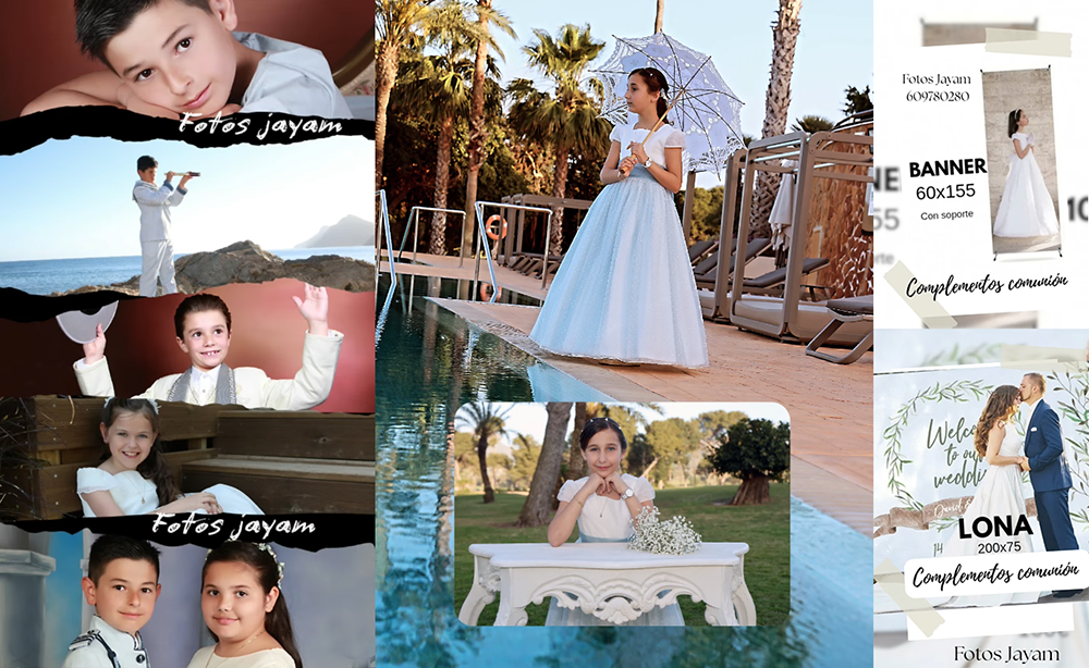 Es uno de los momentos más especiales en la vida de un niño. Un día lleno de ilusión, nervios, sonrisas y miradas que reflejan la inocencia y la alegría de esta etapa tan bonita. En Fotos Jayam queremos capturar ese sentimiento único: la emoción de sentirse mayor por un día, la dulzura de su sonrisa y esos recuerdos que quedarán para siempre en vuestra familia. Además, si lo necesitas, tenemos los complementos para personalizar cada rincón de ese día.