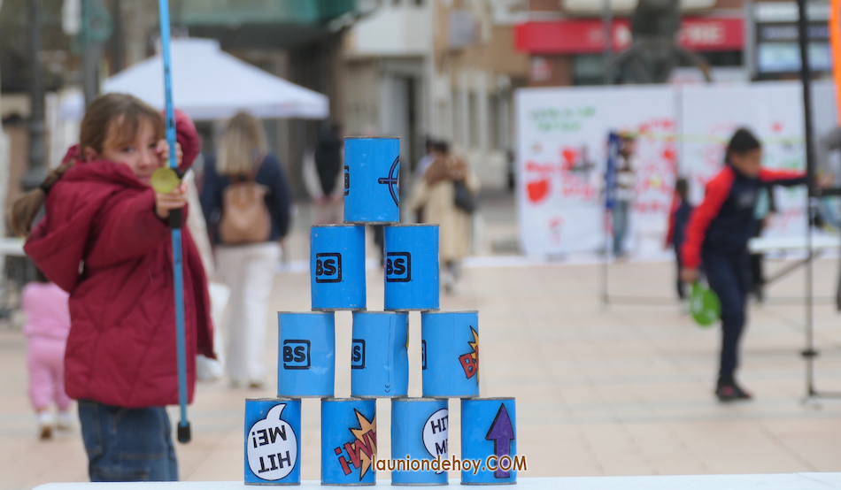 La plaza de Joaquín Costa de la ciudad de La Unión acogió una animada matinal de variados juegos tradicionales en los que participaron chavales, padres y abuelos.