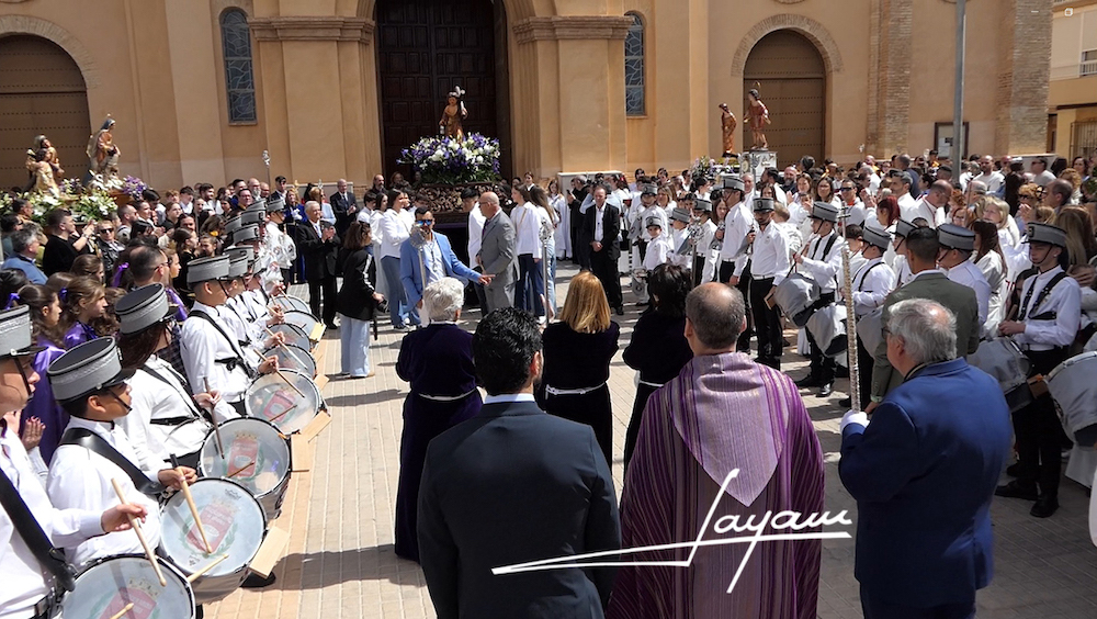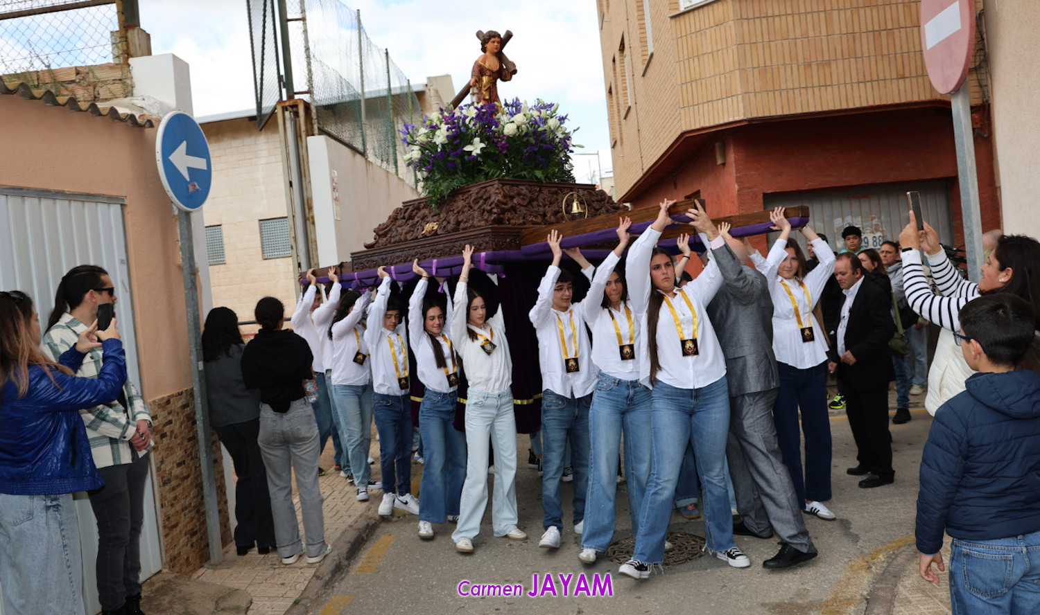 Un centenar de alumnos han protagonizado la sexta edición de la procesión del colegio de El Garbanzal, que ha culminado con un encuentro de imágenes cuya emoción ha elevado una saeta dedicada al Cristo de los Mineros.