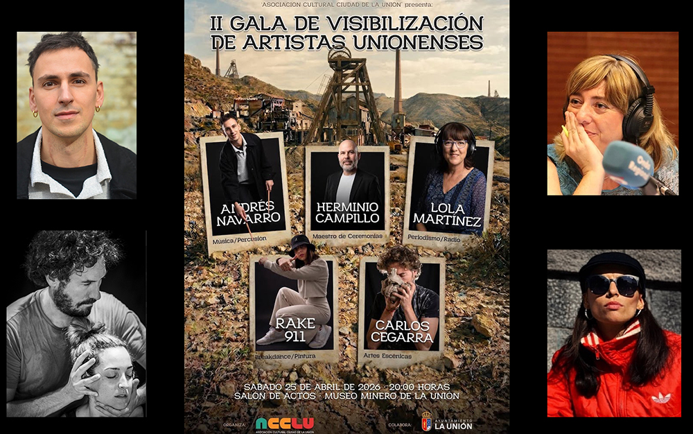 La segunda edición de la 'Gala de visibilización de artistas unionenses', que organiza la asociación cultural 'Ciudad de La Unión', espera contar con un buen respaldo de los vecinos este sábado en el salón de actos del Museo Minero, por cuyo escenario pasarán Carlos Cegarra, Rake 911, Lola Martínez y Andrés Navarro, con Herminio Campillo como presentador. "La música, la danza, el periodismo y las artes escénicas se unen para demostrar que en La Unión el arte no solo existe..., impacta", expresan desde la organización.