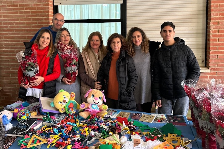 ... en el instituto unionense Sierra Minera con el mercadillo de Navidad organizado por el departamento de administración, que ofreció flores, manualidades del alumnado y artículos de segunda mano, en lo que fue una iniciativa solidaria con destino a Cáritas, a la que también se entregaron los alimentos recogidos en otra iniciativa llevada a cabo estas fechas.