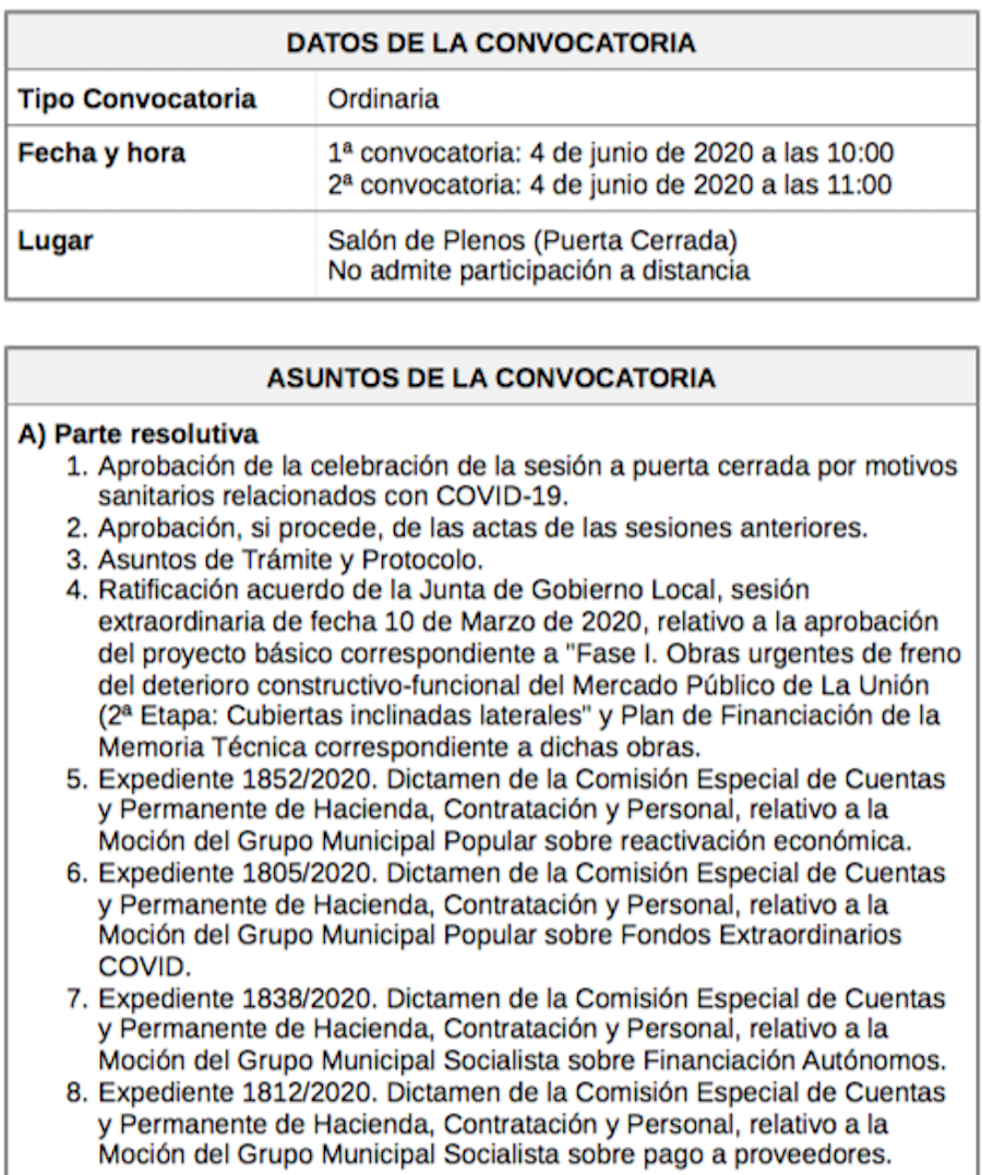 Este jueves, Pleno a puerta cerrada