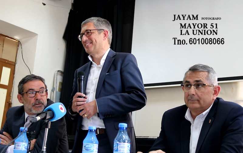El secretario de Estado en funciones de Medio Ambiente, Hugo Morán Fernández, acompañado del delegado del Gobierno de la Región de Murcia, Francisco Jiménez, y el alcalde de La Unión, Pedro López Milán, ha sido el encargado de explicar a los vecinos, colectivos y asociaciones el estado en que se encuentra la paralización de las obras de regeneración y adecuación ambiental de la Bahía de Portmán.