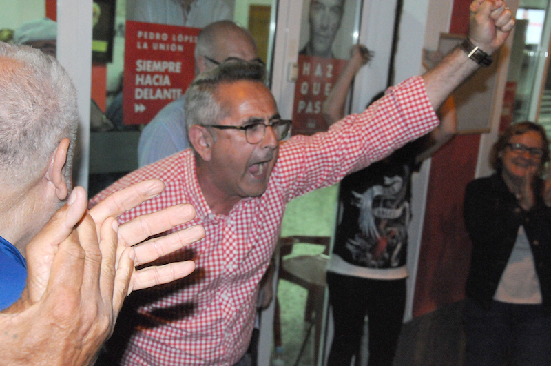 Pedro López Milán revalida la Alcaldía de La Unión con mayoría absoluta. “He tenido mas nervios contenidos que hace cuatro años, pero que este cariño que me han demostrado los vecinos de La Unión me dan fuerza para acometer cuatro años con un equipo de jóvenes y veteranos que trabajaran incansablemente para que este municipio ofrezca trabajo y bienestar a todos los vecinos”, ha expresado.
