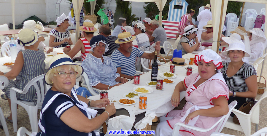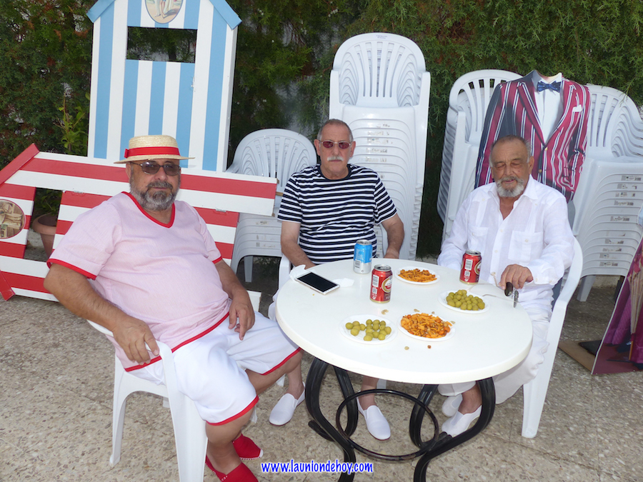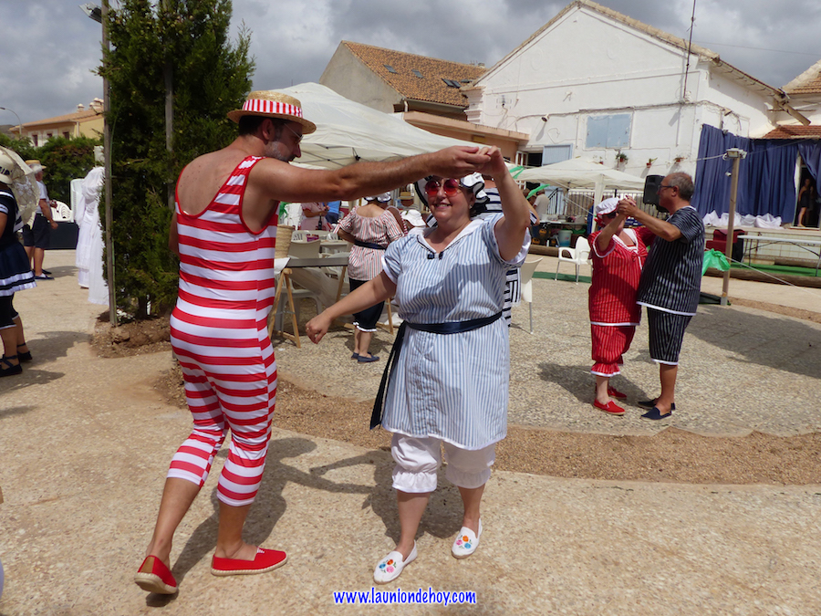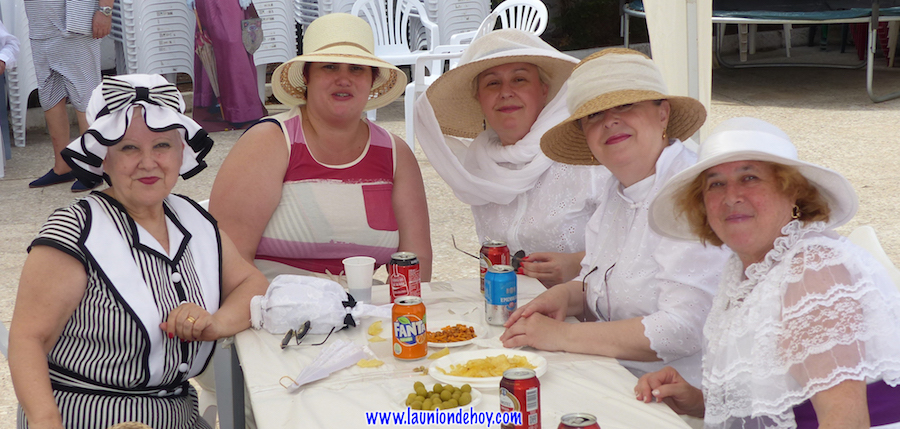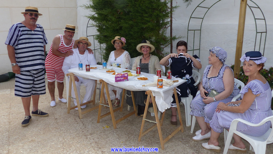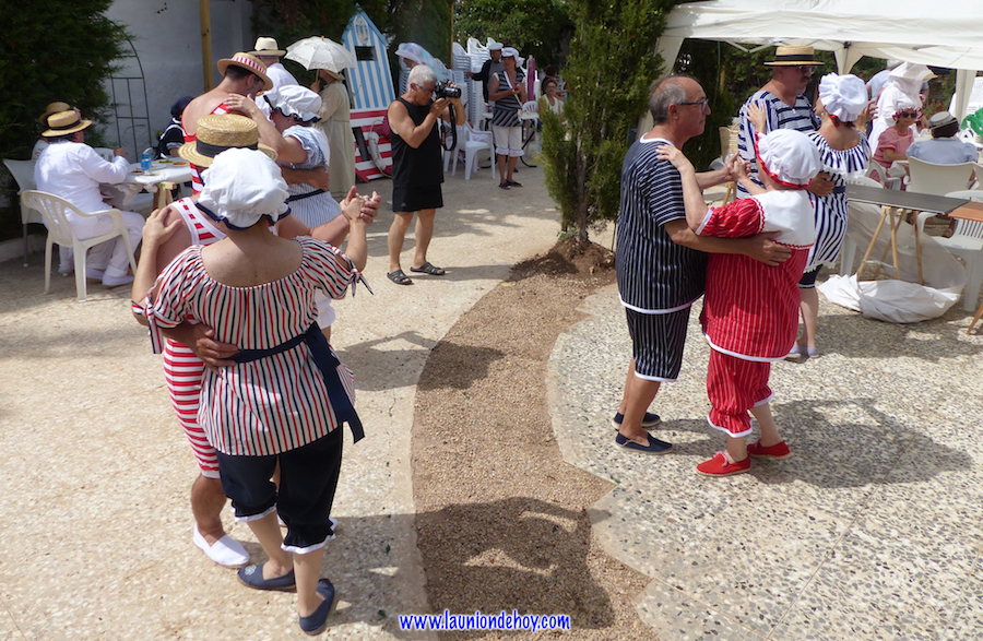 El modernismo se sigue abriendo paso en La Unión y para esta mañana se había fijado la primera edición de los baños modernistas en la playa de El Lastre, pero el fuerte viento ha echado por tierra los cálculos, especialmente cuando 'Eolo' ha arrancado el toldo que se había instalado en la arena. La alternativa ha sido habilitar un centenario de la misma época que se representaba, la Liga de Vecinos, y en concreto su patio, donde, los protagonistas de la Asociación Cultural Los Modernistas de Levante de Cartagena, alternando trajes de vestir con otros de baño han pasado un muy agradable domingo entre bailes, aperitivos y buenas tertulias.