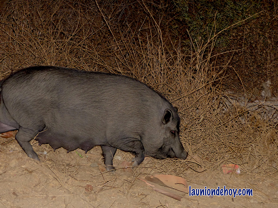 Varios conductores que anoche transitaban por la rotonda ubicada próxima al parque de educación vial se encontraron con una solitaria cerda vietnamita.