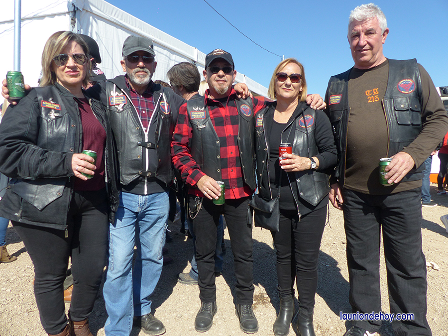 Cinco componentes del club motero 'Liberados Bikers Club' de La Unión en el almuerzo motero de la fiestas de La Palma (Cartagena).