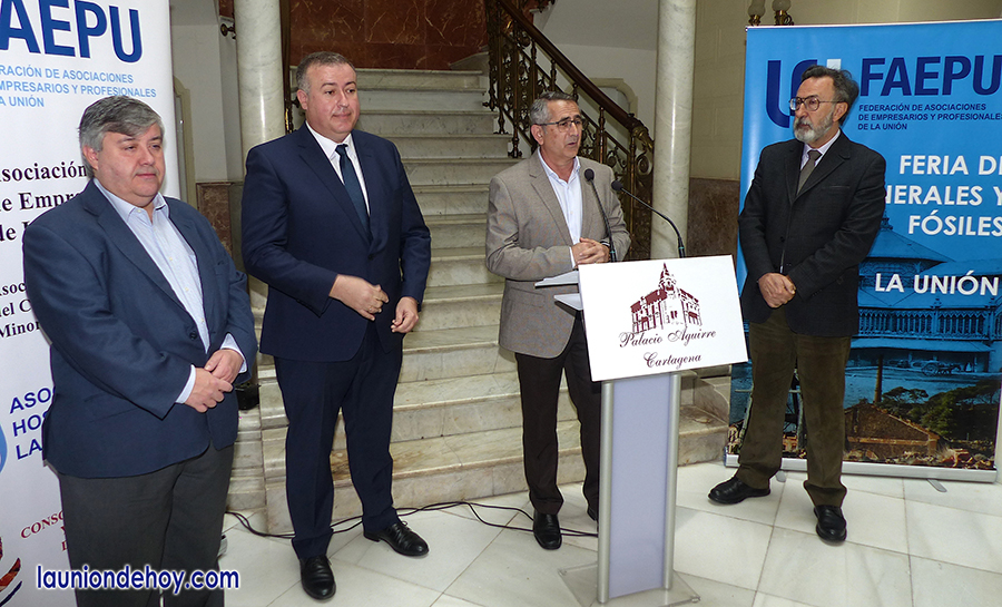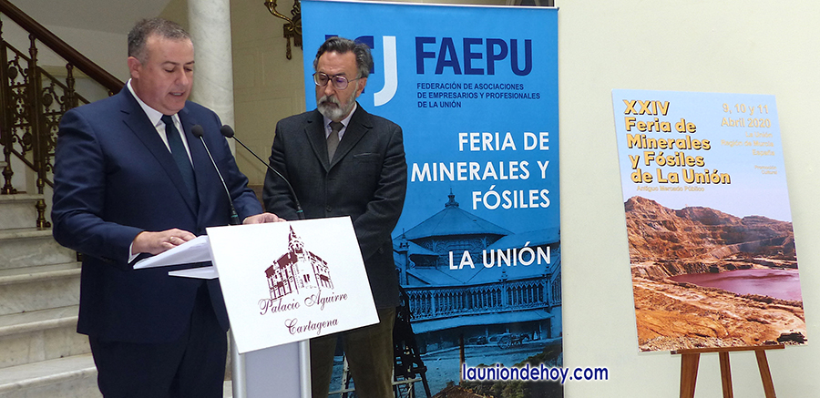 La sede de la Comunidad Autónoma en Cartagena, el Palacio de Aguirre, ha sido el marco que hoy ha acogido la presentación del cartel y de la programación de la XXIV edición de la Feria de Minerales y Fósiles de La Unión, que tendrá lugar los días 9, 10 y 11 de abril de 2020, en la sede del antiguo Mercado Público de La Unión. La entrada es gratuita, en un horario comprendido de 10.00 a 14.00 y de 17.00 a 21.00 horas.