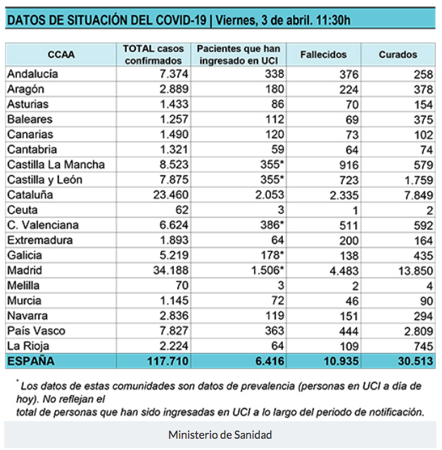 La cifra nacional total es de 117.710, mientras que ayer se situaba en 110.574 en el país transalpino. También es superior en número de recuperados (30.513 a 16.847), mientras que en fallecidos hay más en tierras italianas (13.155 a 10.935). En nuestro país, en las últimas 24 horas, se ha dado 7.472 nuevos casos y 932 muertos.