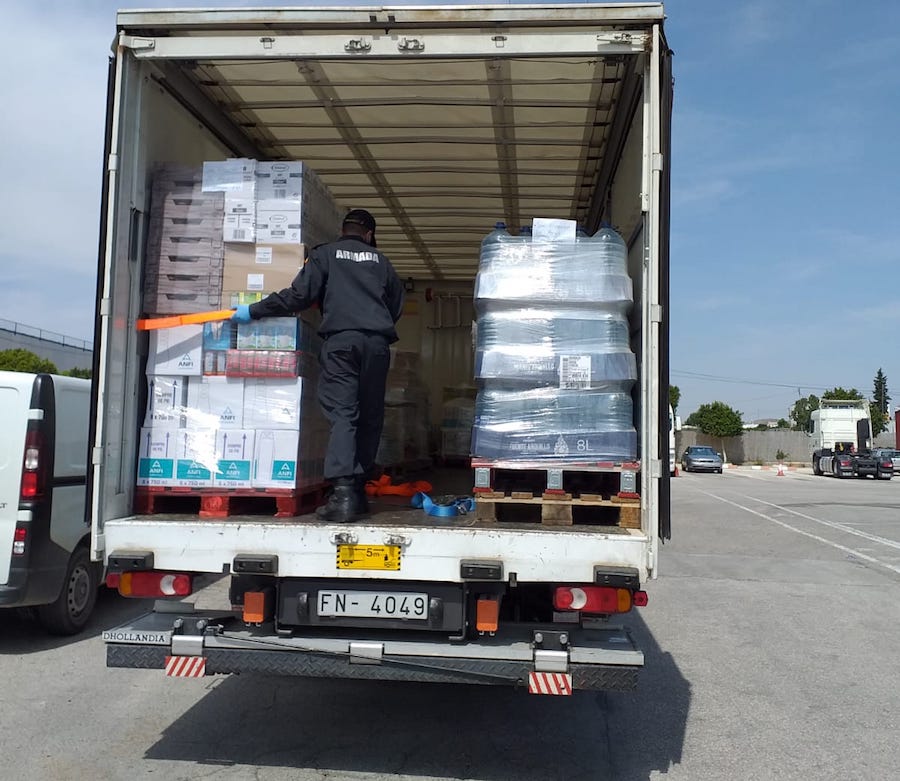 La Delegación del Gobierno ha puesto en marcha un dispositivo de coordinación entre el Ejército de Tierra, la Armada y Cáritas para el reparto por distintos municipios de la Región de Murcia (entre los que figura La Unión) de 60.000 kilos de alimentos que la entidad benéfica tiene almacenados en sus instalaciones y a los que, en estas circunstancias, no puede dar salida.