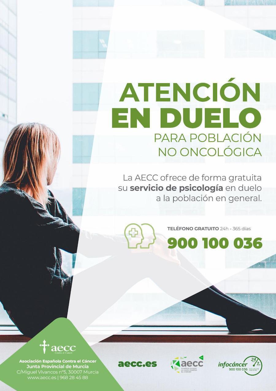 La delegación en La Unión informa que la Asociación Española Contra el Cáncer ofrece de forma gratuito este servicio en duelo a la población en general.