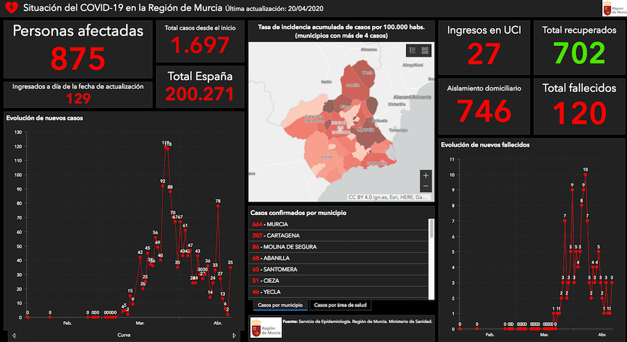 Mediante esta herramienta, explicó hoy el consejero de Salud, Manuel Villegas, “ponemos a disposición de los ciudadanos toda la información relativa al estado de la epidemia en la Región y contribuimos a ampliar el conocimiento sobre la misma para enfrentarnos a la actual crisis sanitaria”.