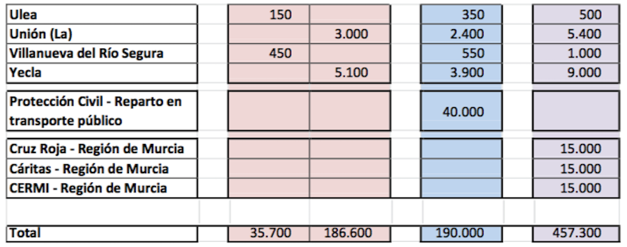 El Sistema Nacional de Protección Civil, bajo la coordinación de la Dirección General de Protección Civil y Emergencias del Ministerio del Interior, está al frente de este dispositivo en coordinación con los Ayuntamientos, la Comunidad Autónoma y la Federación de Municipios de la Región de Murcia, que, a nivel nacional, está repartiendo alrededor de seis millones de mascarillas.