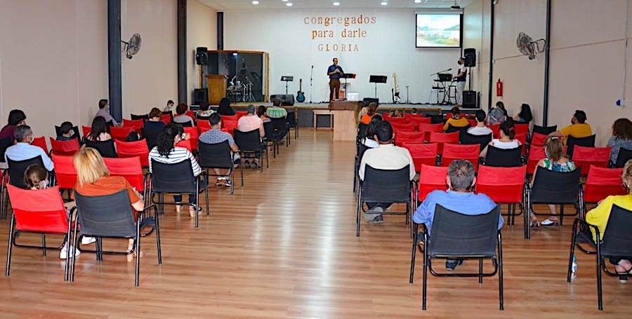 Bienvenido Medrano, responsable de la iglesia 'Ríos de vida', informa que las reuniones se llevarán a cabo una vez por semana y que todos los asistentes, en el primer acto celebrado desde que irrumpió la pandemia, "tuvieron un comportamiento ejemplar cumpliendo todas y cada una de las normas. Es cierto que aún hay personas mayores o con niños pequeños que van a esperar algunas semanas más para asistir a las reuniones, lo cual nosotros aconsejamos y apoyamos totalmente. Y es por este motivo que vamos a retransmitir todas las reuniones por nuestro Facebook en directo para todos aquellos que quieran seguirlo desde casa".