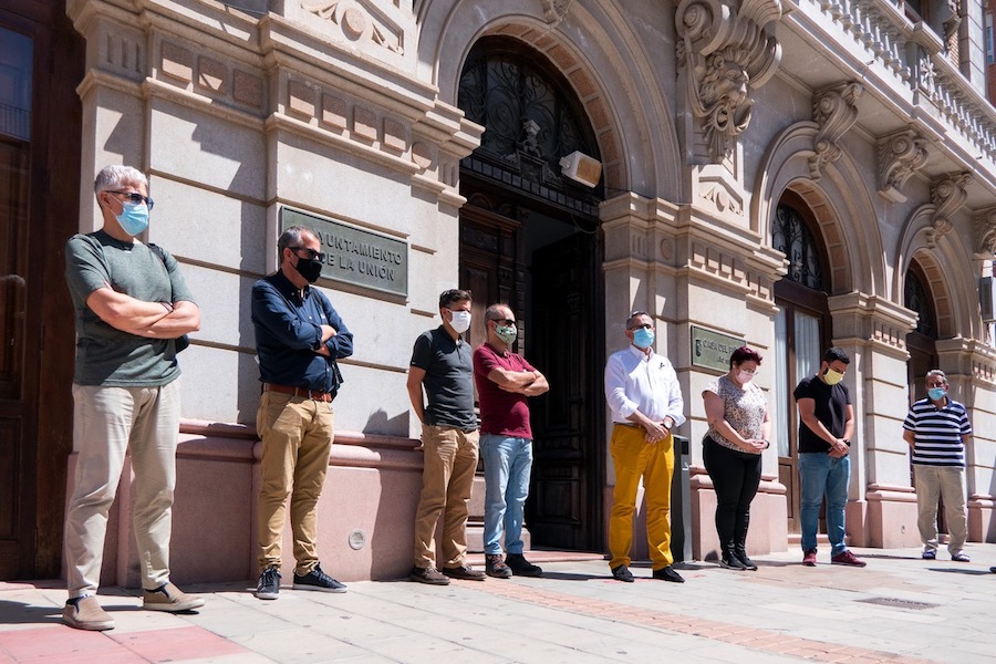 La fachada del Ayuntamiento de La Unión ha acogido esta mañana un minuto de silencio en memoria por los fallecidos como consecuencia de la pandemia Covid-19. Cabe recordar que en la próxima medianoche finaliza el periodo de luto oficial establecido por el Real Decreto 538/2020 de 26 de mayo.