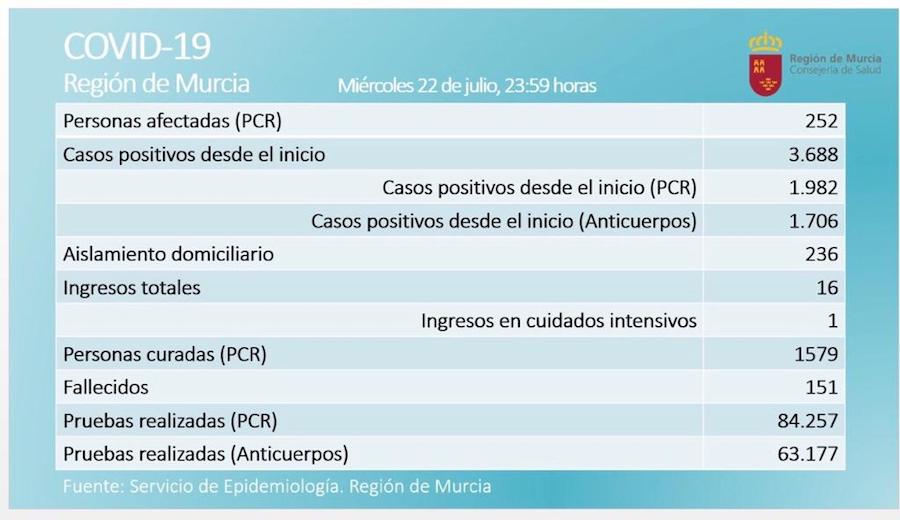 Respecto a Cieza, se continúa investigando los casos registrados. Finalmente, y tras repetir las pruebas PCR a las 48 horas, todos los profesionales del hospital han resultado negativos, por lo que se descarta el brote por el momento.