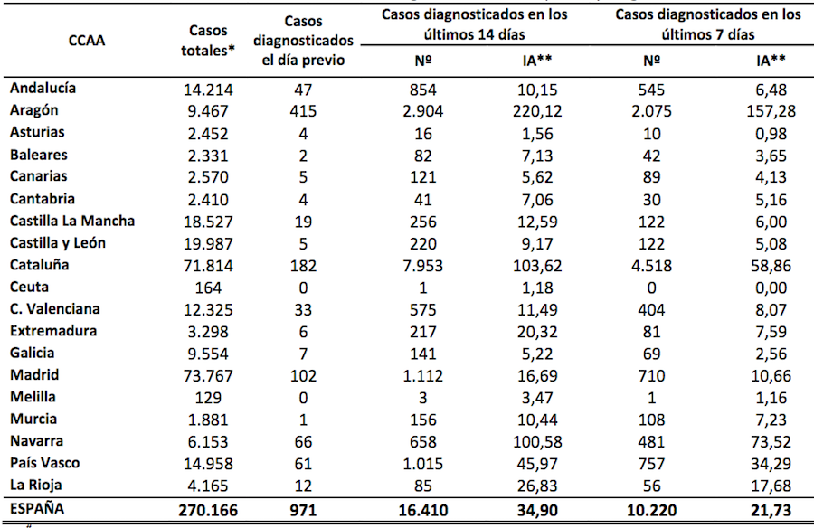 La situación de alarma cada vez va a más. Así lo reflejan los 971 nuevos casos en el último día, dentro de una progresión que siguen en constante aumento con registros que no se daban desde hace meses. Aragón, con 415 casos, es la comunidad autónoma con más incidencia en un panorama nacional con casi trescientos rebrotes. “Puede que estemos en una segunda oleada”, apuntan desde el gobierno aragonés