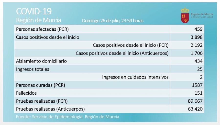 La Comunidad Autónoma no descarta adoptar medidas más restrictivas en Lorca y Mazarrón si continúan los contagios, al igual que en el barrio murciano de San Andrés y en Beniaján. La cifra actual de contagios alcanza los 459 casos (al menos 180 relacionados con el ocio nocturno) y desde el gobierno regional se apunta que ya no es un tema de rebrotes sino que se trata de una expansión del virus.