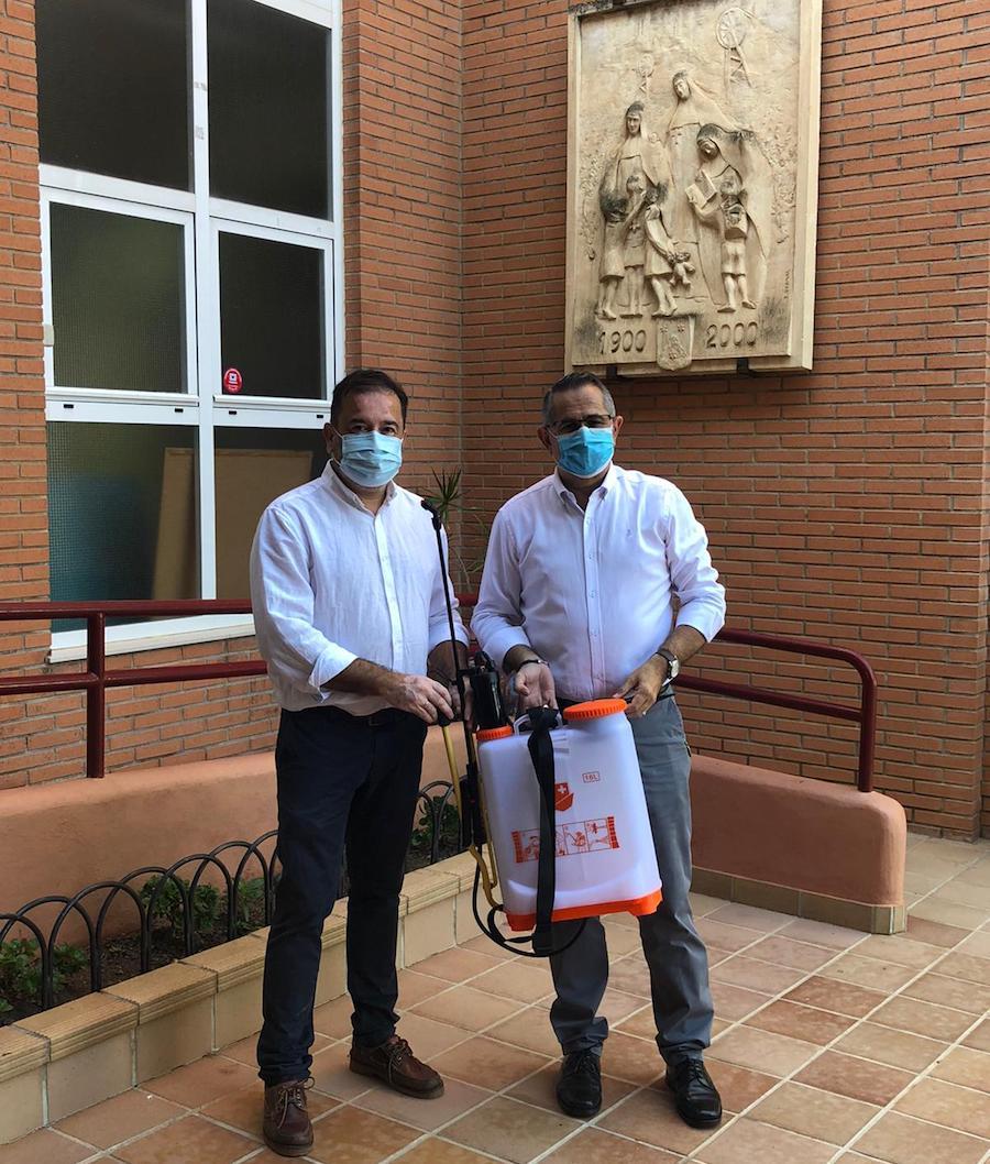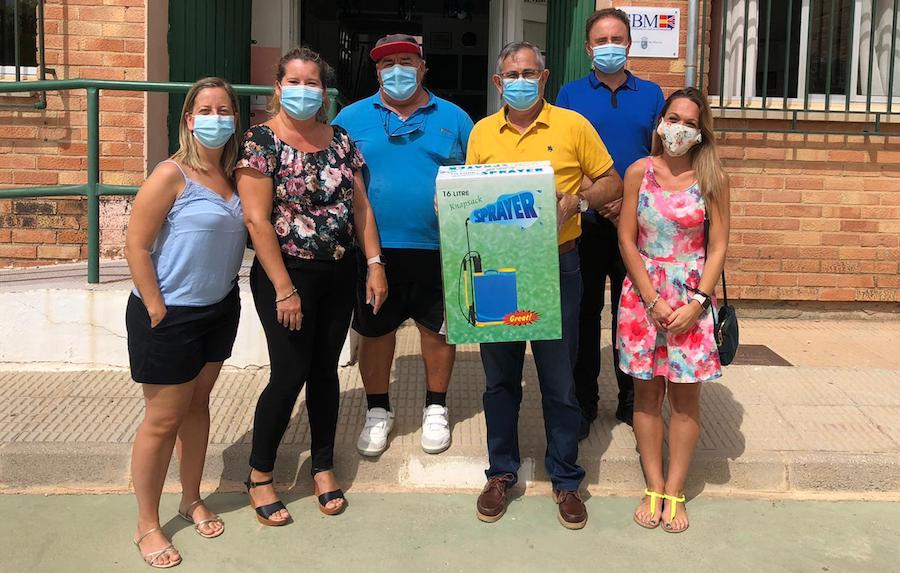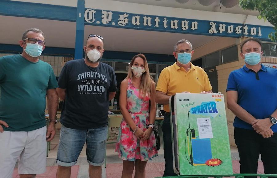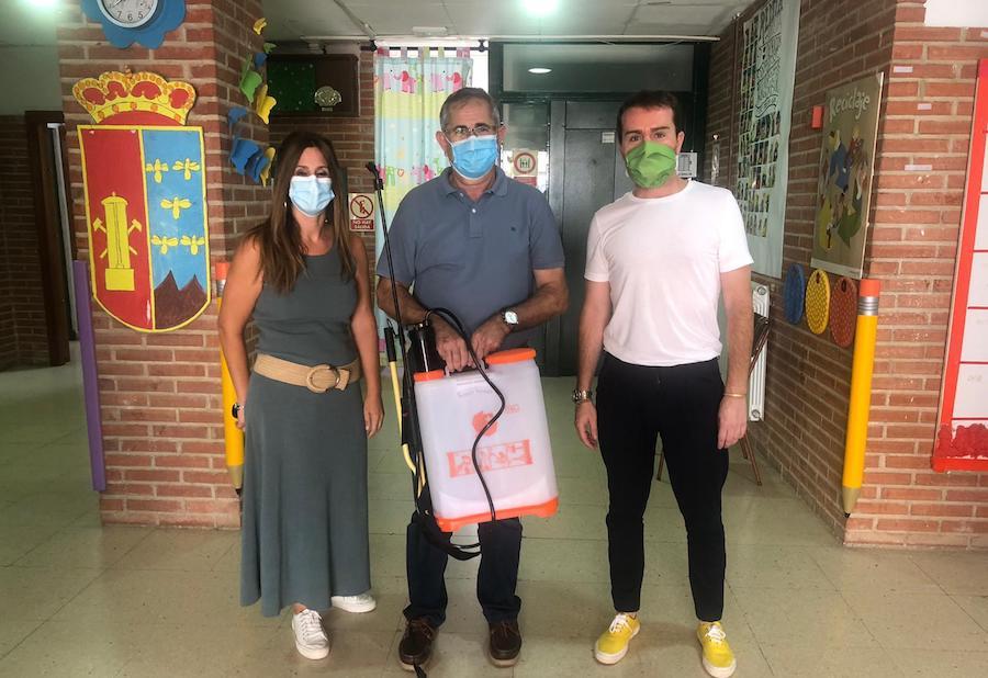 El Ayuntamiento distribuye mochilas con líquido desinfectante a los colegios